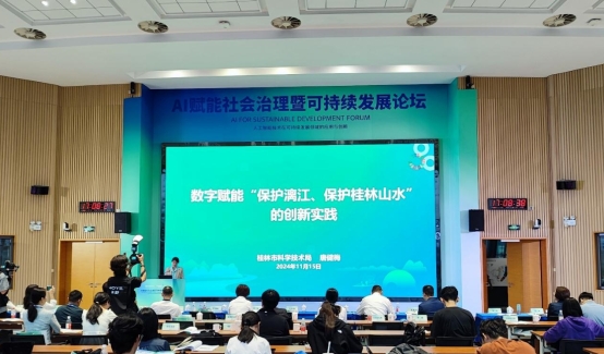 论坛上,市科技局参会代表以“数字赋能‘保护漓江、保护桂林山水’的创新实践”为题,分享了桂林市通过人工智能、大数据、云计算等现代数字技术手段,实现对漓江生态环境的全面监测和精准管理,促进生态保护和可持续发展的成功经验,充分展示了桂林市在景观资源可持续利用方面的实践经验和显著成效。