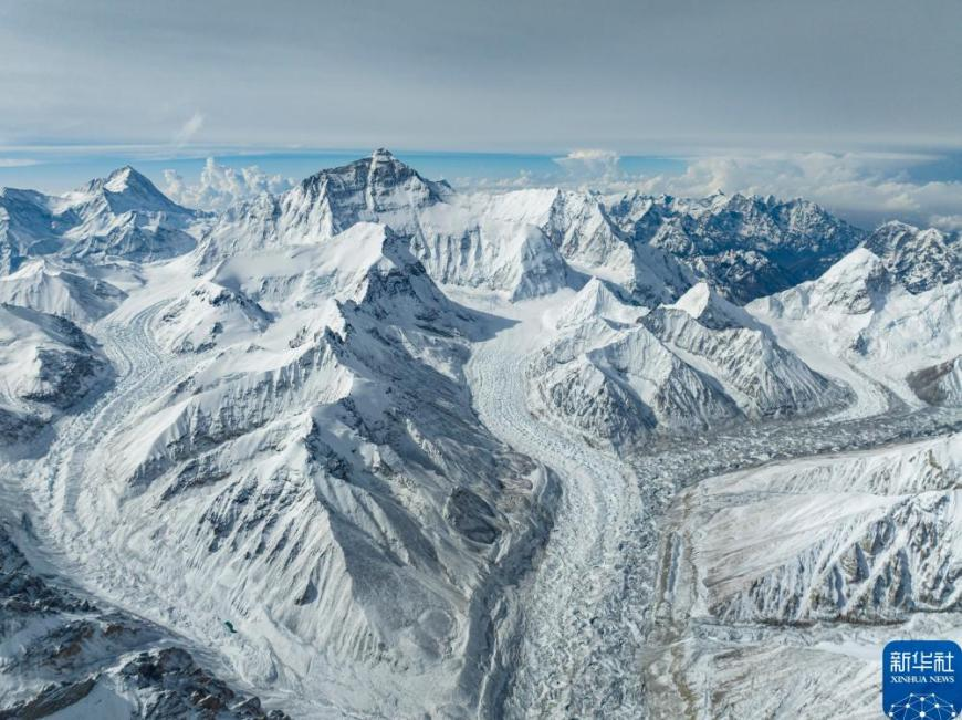 2023年5月23日在海拔8400米左右高空拍摄的珠穆朗玛峰(新华社记者 孙非 摄)
